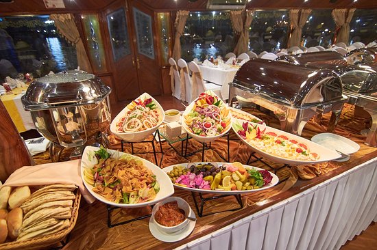 As the city’s dazzling lights shimmer on the water, relish a sumptuous buffet that tantalizes your taste buds with a fusion of international and local cuisine.